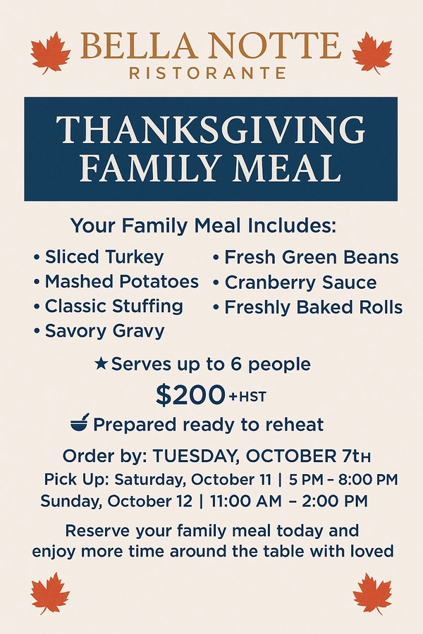Enjoy our masterpiece meals with your choice of wine from our extensive list. From intriguing appetizers to freshly made tantalizing desserts, Bella Notte makes every dining experience a “Beautiful” one.